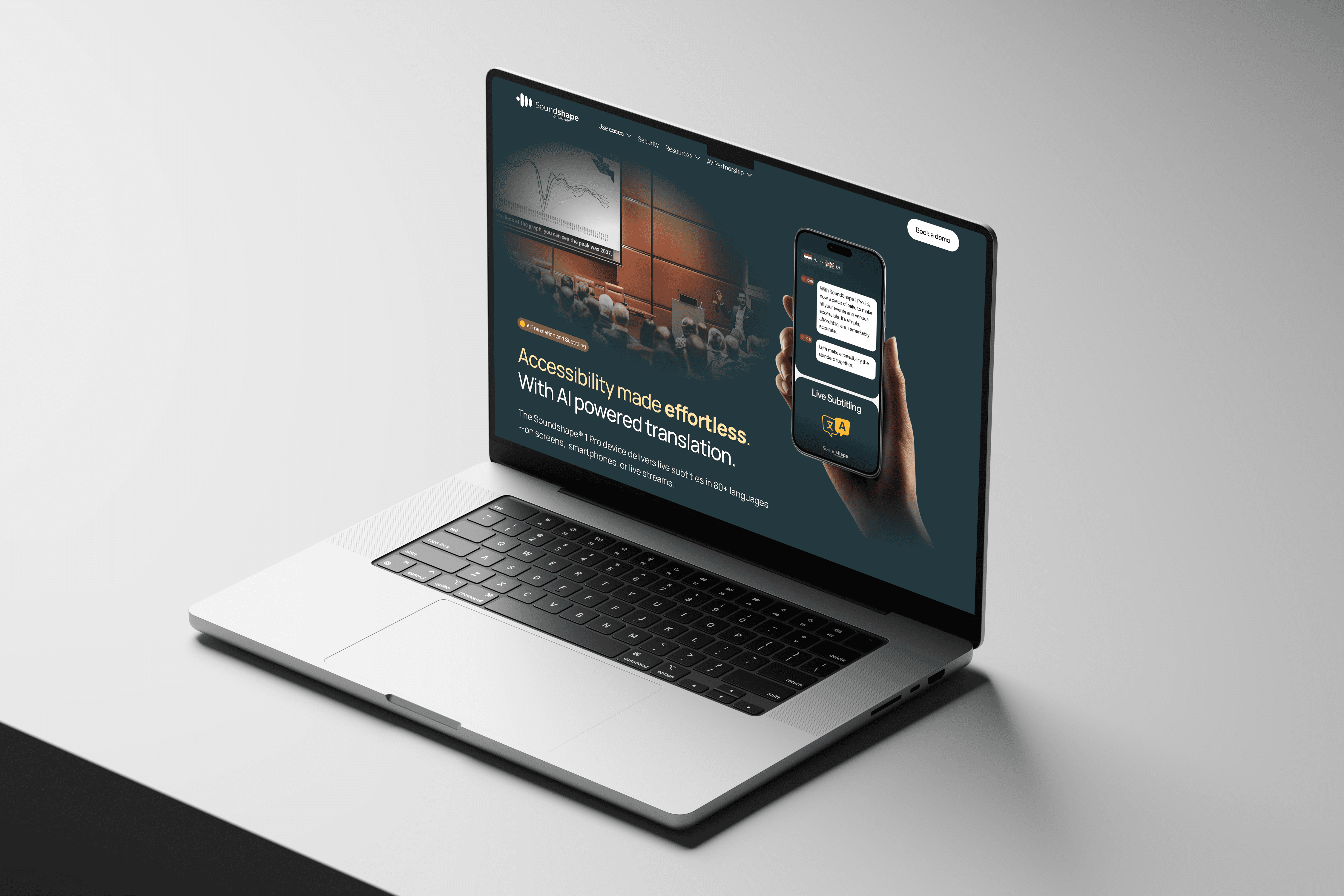 Soundshape® brings real-time AI translation and subtitling to live events, making accessibility effortless across venues and audiences. We designed a clear, confidence-driven website that highlights speed, accuracy, and enterprise-grade reliability balancing powerful technology with a simple, human-first experience.